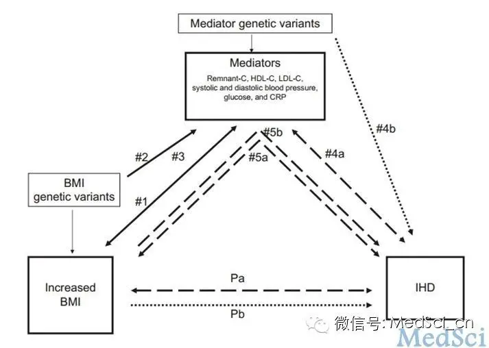 理论基础:肥胖会增加缺血性心脏病的风险,中间变量(主要是残留胆固醇、低密度脂蛋白胆固醇、血压)对其风险起着调节作用,而不是升高的体重本身对风险起着调节。