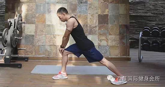 2.后腿膝关节伸直,脚后跟不要离开地面。