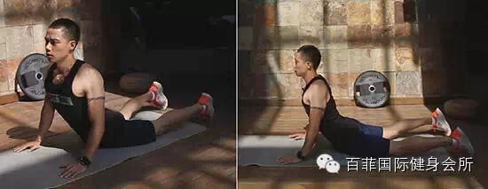 1.俯卧,双手放于身体外侧,轻轻将上身推起,肘关节微屈,试着将身体加左右侧旋转;