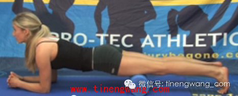 注:如果能够忍受疼痛而想加强按摩程度可将另一只脚重量叠加上去 腿后肌