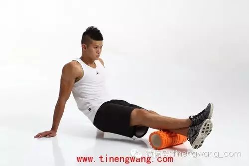 2.慢慢的从脚跟处开始朝膝盖方向滚动,来回放松小腿肌群,也可双脚同时进行。
