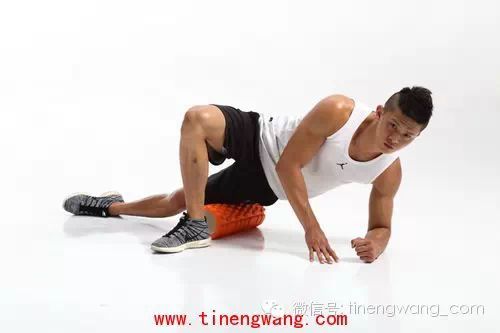 3.开始移动你的身体,把重心施力点落在髋关节的位置,从髋关节沿着大腿外侧慢慢的往膝盖滚动。